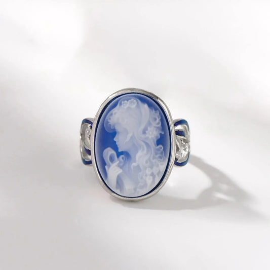 Queenmode 925 Silberblau Achat einstellbarer Ring