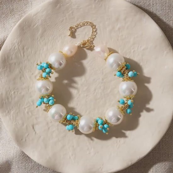 Eine lebendige Fusion aus türkisfarbenen Steinen und geschmolzenen goldfarbenen Fassungen, diese Halskette bringt kühne Kunstfertigkeit in Ihren Look. Ihre organischen Formen und schimmernden Akzente schaffen ein auffälliges Statement-Stück für jeden, der sich zu lebendiger, kreativer Eleganz hingezogen fühlt.