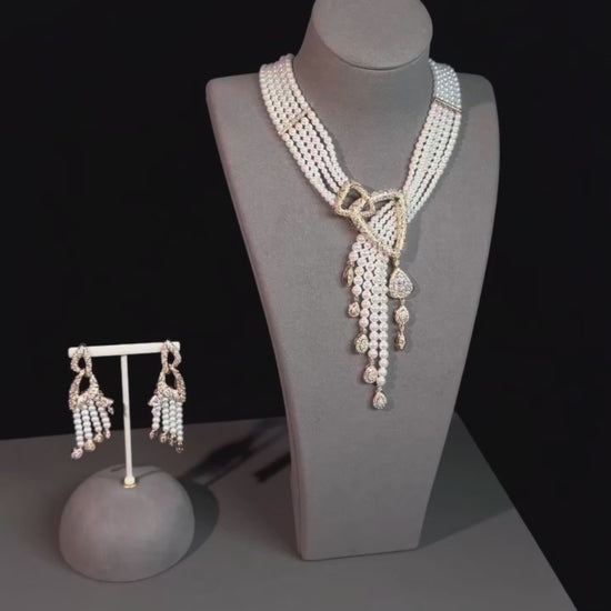 Die Gatsby Gala Perlenohrringe bringen altmodischen Glamour mit einer modernen Einstellung. Funkelnde Details und leuchtende Perlen bewegen sich mit Selbstvertrauen und ziehen jeden Blick auf sich. Entworfen für mutige Nächte, dramatische Auftritte und Frauen, die nie im Hintergrund verschwinden.