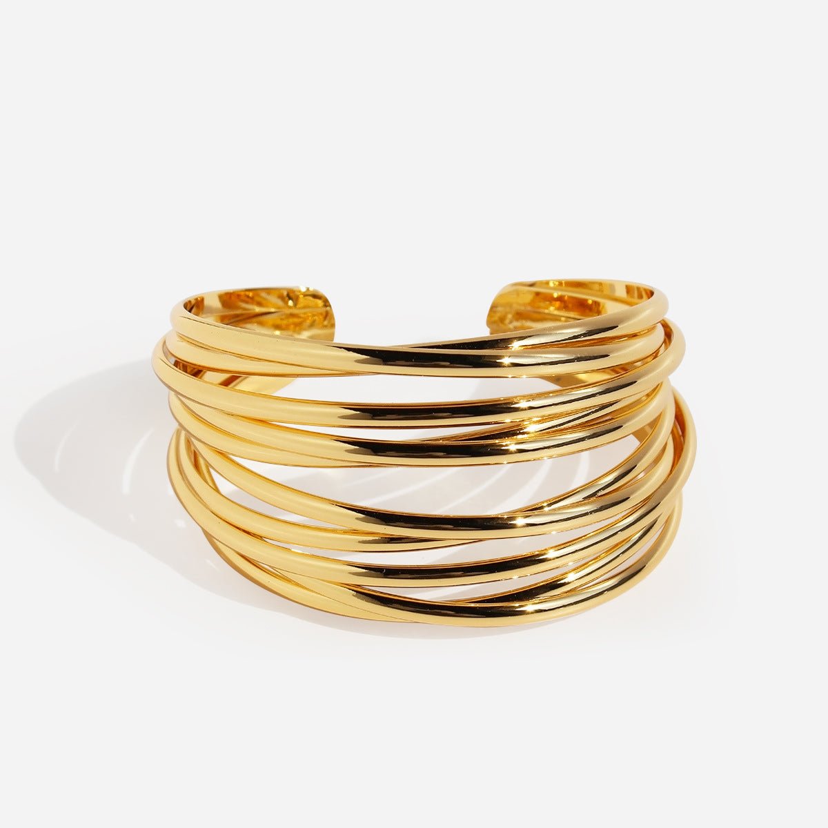 Elegante, audaz y sin esfuerzo elegante: el brazalete abierto de Luxelayers es el epítome de la elegancia moderna. Diseñada con una estructura fluida y abierta que se envuelve alrededor de su muñeca con facilidad, esta pieza tiene el equilibrio perfecto entre la sofisticación y el borde. Ya sea que se use solo para una declaración minimalista o apilada para un efecto en capas, este brazalete es su opción para un aspecto pulido de moda.