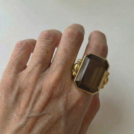 Incontra l'anello vintage francese Marique: eleganza parigina classica con un tocco audace. Con un cristallo naturale sorprendente in una band oro grosso, è fatto per girare la testa e scintillare complimenti.