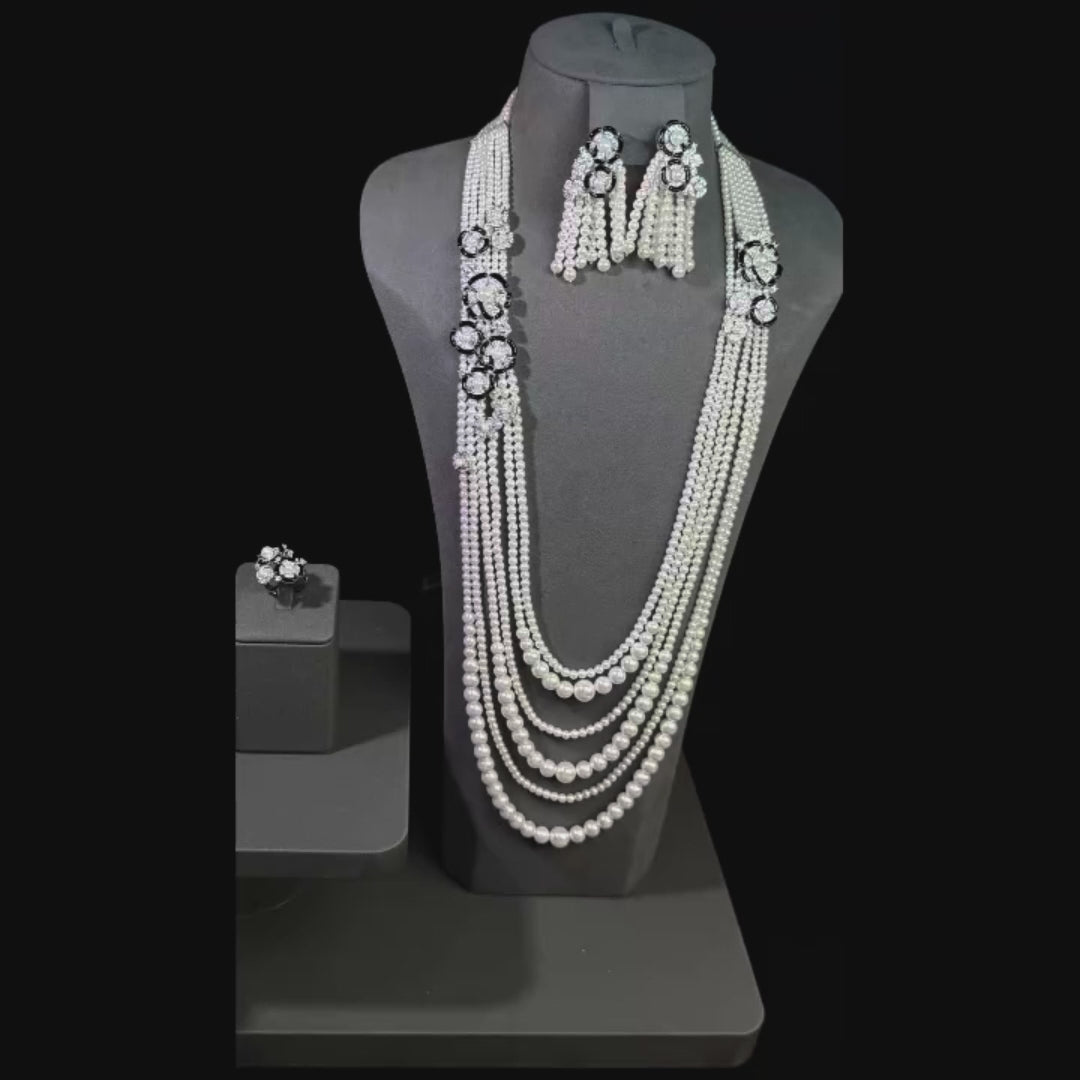 The Duchess Blossom Ring captures timeless elegance with its cluster of radiant crystals and luminous pearls. A statement of refined luxury, it embodies sophistication and grace, perfect for adding a touch of royal allure to your ensemble.