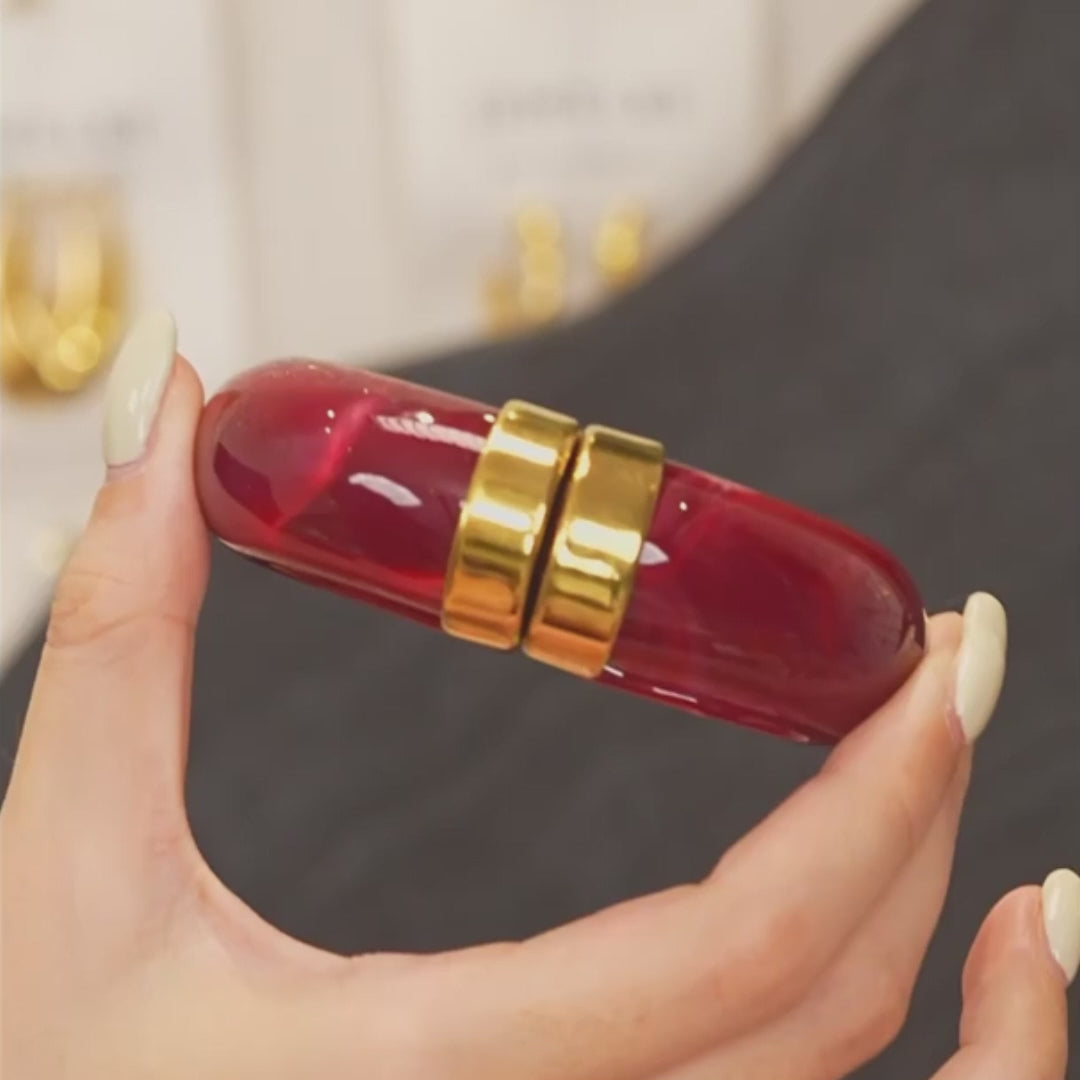 The Gleam Luxe Bangle brings a burst of color and class to your look. Its glossy finish and gold accents create a bold yet refined charm—perfect for those who love vibrant, effortless sophistication.