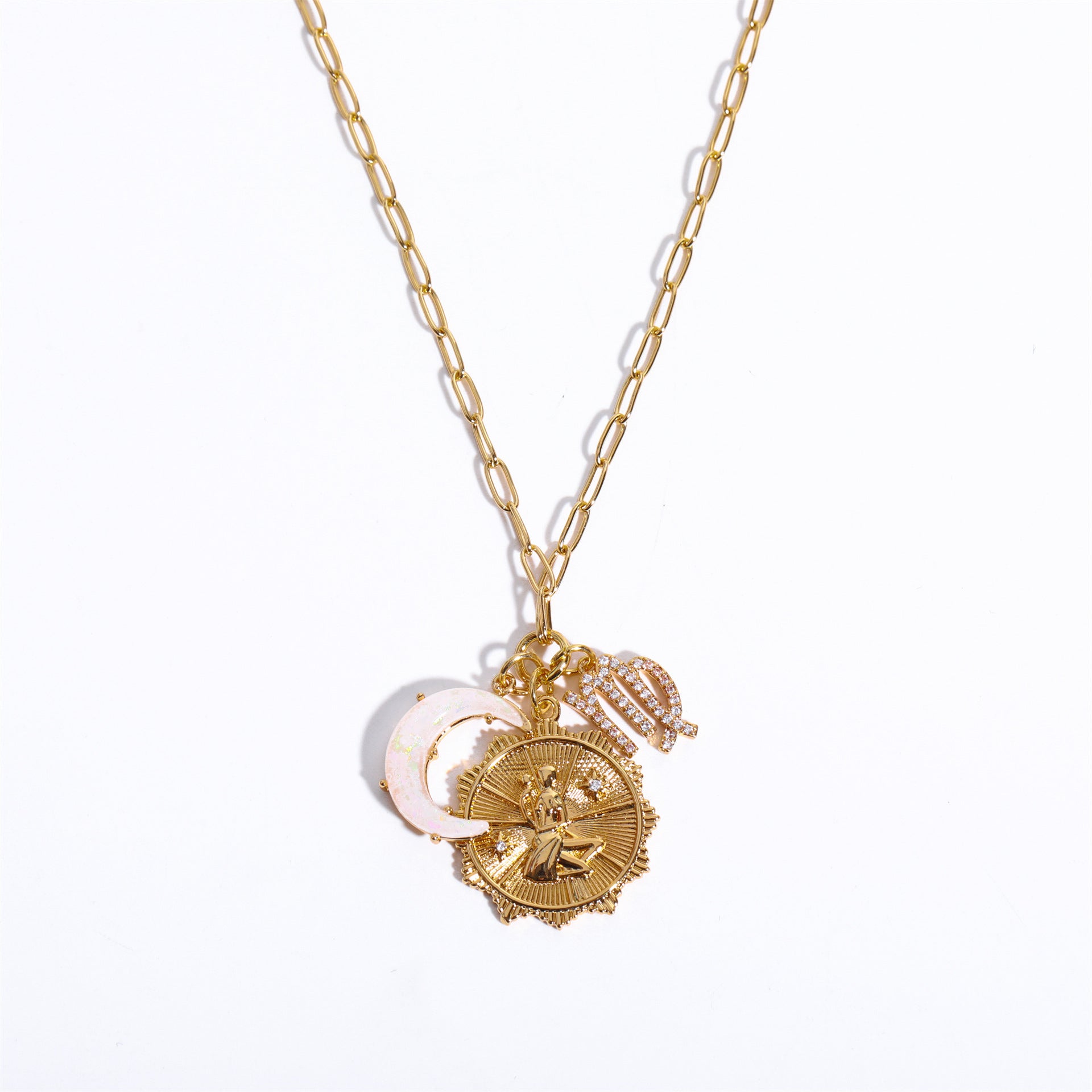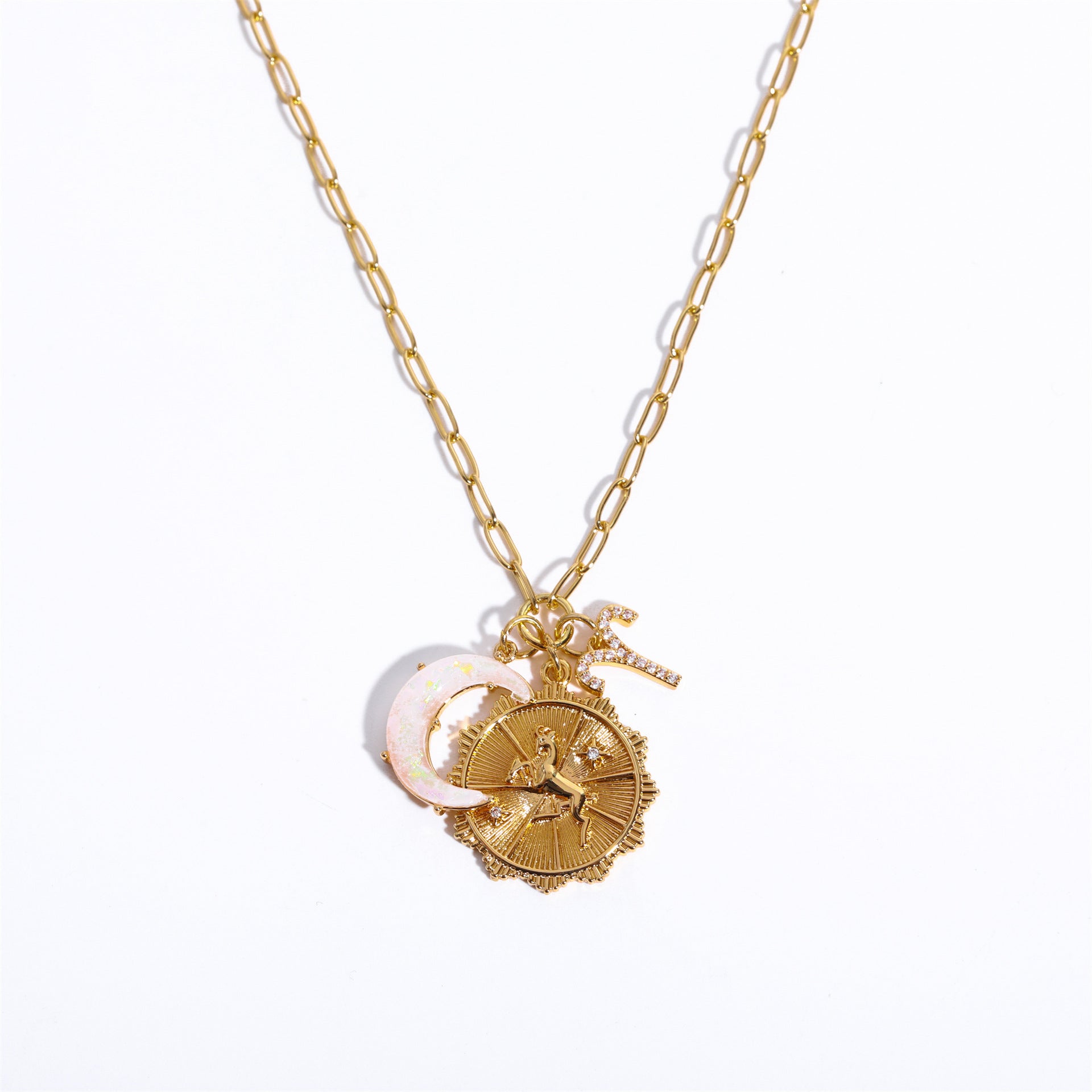 Zodiac Moonlight Necklace glows with celestial charm, featuring shimmering stones arranged in a soft cosmic pattern. Its dreamy, moon-kissed design brings a touch of mystery and elegance, perfect for anyone who loves wearing a little stardust every day.